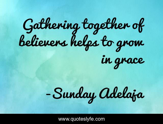 This page presents the quote "Gathering together of believers helps to grow in grace". Author of this quote is Sunday Adelaja. This quote is about grace, grow,.