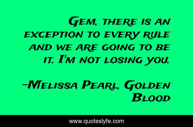 "Melissa Pearl, Golden Blood Quotes." Quoteslyfe.com, 2025. Fri. 05 Dec. 2025. <https://www.quoteslyfe.com/quote/Gem-there-is-an-exception-to-every-18663>.