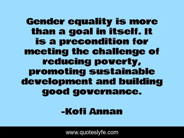 "Kofi Annan Quotes." Quoteslyfe.com, 2025. Fri. 05 Dec. 2025. <https://www.quoteslyfe.com/quote/Gender-equality-is-more-than-a-goal-295381>.