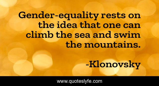 This page presents the quote "Gender-equality rests on the idea that one can climb the sea and swim the mountains.". Author of this quote is Klonovsky. .
