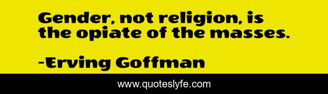 This page presents the quote "Gender, not religion, is the opiate of the masses.". Author of this quote is Erving Goffman. .