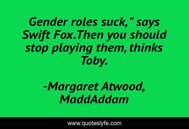"Margaret Atwood, MaddAddam Quotes." Quoteslyfe.com, 2025. Mon. 08 Dec. 2025. <https://www.quoteslyfe.com/quote/Gender-roles-suck-says-Swift-Fox-Then-231205>.