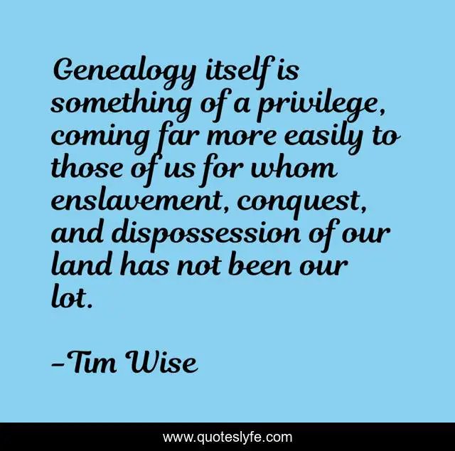 "Tim Wise Quotes." Quoteslyfe.com, 2025. Fri. 05 Dec. 2025. <https://www.quoteslyfe.com/quote/Genealogy-itself-is-something-of-a-privilege-86572>.