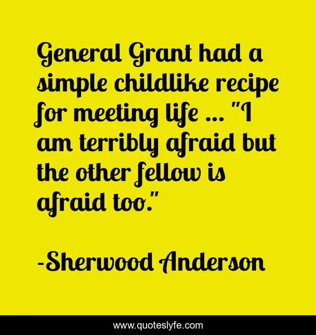 This page presents the quote "General Grant had a simple childlike recipe for meeting life ... "I am terribly afraid but the other fellow is afraid too."". Author of this quote is Sherwood Anderson. This quote is about success, happiness,.