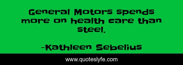 This page presents the quote "General Motors spends more on health care than steel.". Author of this quote is Kathleen Sebelius. This quote is about steel, health care, care,.