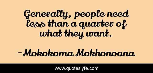 "Mokokoma Mokhonoana Quotes." Quoteslyfe.com, 2025. Sat. 06 Dec. 2025. <https://www.quoteslyfe.com/quote/Generally-people-need-less-than-a-quarter-226919>.