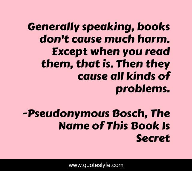 "Pseudonymous Bosch, The Name of This Book Is Secret Quotes." Quoteslyfe.com, 2025. Tue. 09 Dec. 2025. <https://www.quoteslyfe.com/quote/Generally-speaking-books-don-t-cause-much-42733>.