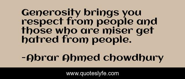 This page presents the quote "Generosity brings you respect from people and those who are miser get hatred from people.". Author of this quote is Abrar Ahmed chowdhury. .
