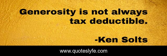 "Ken Solts Quotes." Quoteslyfe.com, 2025. Mon. 08 Dec. 2025. <https://www.quoteslyfe.com/quote/Generosity-is-not-always-tax-deductible-236717>.