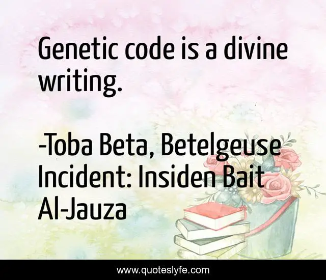 "Toba Beta, Betelgeuse Incident: Insiden Bait Al-Jauza Quotes." Quoteslyfe.com, 2025. Fri. 05 Dec. 2025. <https://www.quoteslyfe.com/quote/Genetic-code-is-a-divine-writing-11496>.