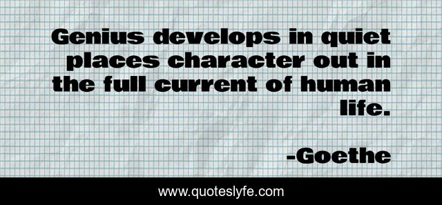 "Goethe Quotes." Quoteslyfe.com, 2025. Sat. 06 Dec. 2025. <https://www.quoteslyfe.com/quote/Genius-develops-in-quiet-places-character-out-266178>.