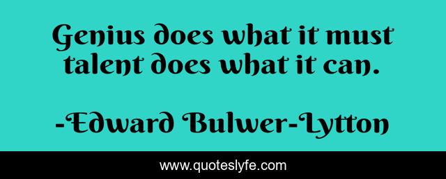 This page presents the quote "Genius does what it must talent does what it can.". Author of this quote is Edward Bulwer-Lytton. .