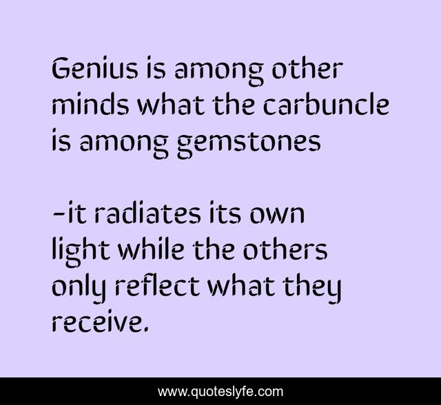 "it radiates its own light while the others only reflect what they receive. Quotes." Quoteslyfe.com, 2025. Fri. 05 Dec. 2025. <https://www.quoteslyfe.com/quote/Genius-is-among-other-minds-what-the-230819>.