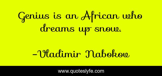 This page presents the quote "Genius is an African who dreams up snow.". Author of this quote is Vladimir Nabokov. .