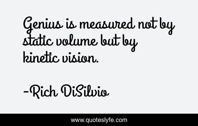 "Rich DiSilvio Quotes." Quoteslyfe.com, 2025. Sat. 06 Dec. 2025. <https://www.quoteslyfe.com/quote/Genius-is-measured-not-by-static-volume-8166>.
