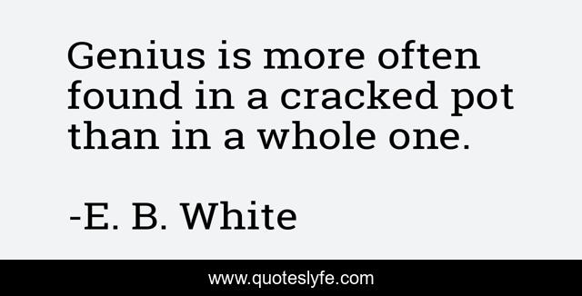 This page presents the quote "Genius is more often found in a cracked pot than in a whole one.". Author of this quote is E. B. White. This quote is about genius, whole, found,.