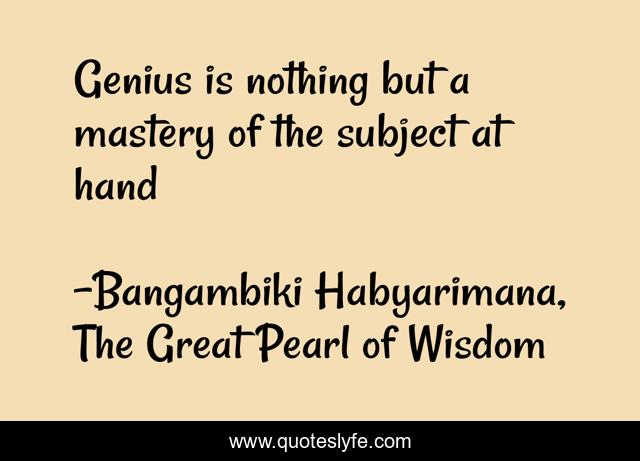 "Bangambiki Habyarimana, The Great Pearl of Wisdom Quotes." Quoteslyfe.com, 2025. Fri. 05 Dec. 2025. <https://www.quoteslyfe.com/quote/Genius-is-nothing-but-a-mastery-of-230830>.