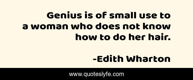This page presents the quote "Genius is of small use to a woman who does not know how to do her hair.". Author of this quote is Edith Wharton. .