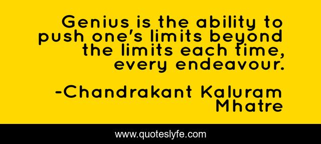 This page presents the quote "Genius is the ability to push one's limits beyond the limits each time, every endeavour.". Author of this quote is Chandrakant Kaluram Mhatre. This quote is about inspirational-attitude, reflection-on-life,.