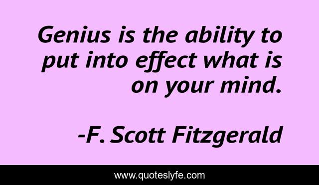 This page presents the quote "Genius is the ability to put into effect what is on your mind.". Author of this quote is F. Scott Fitzgerald. This quote is about genius, mind, ability,.