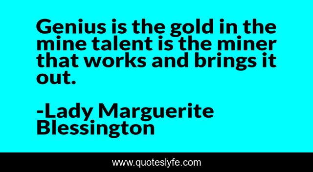 "Lady Marguerite Blessington Quotes." Quoteslyfe.com, 2025. Mon. 08 Dec. 2025. <https://www.quoteslyfe.com/quote/Genius-is-the-gold-in-the-mine-274678>.
