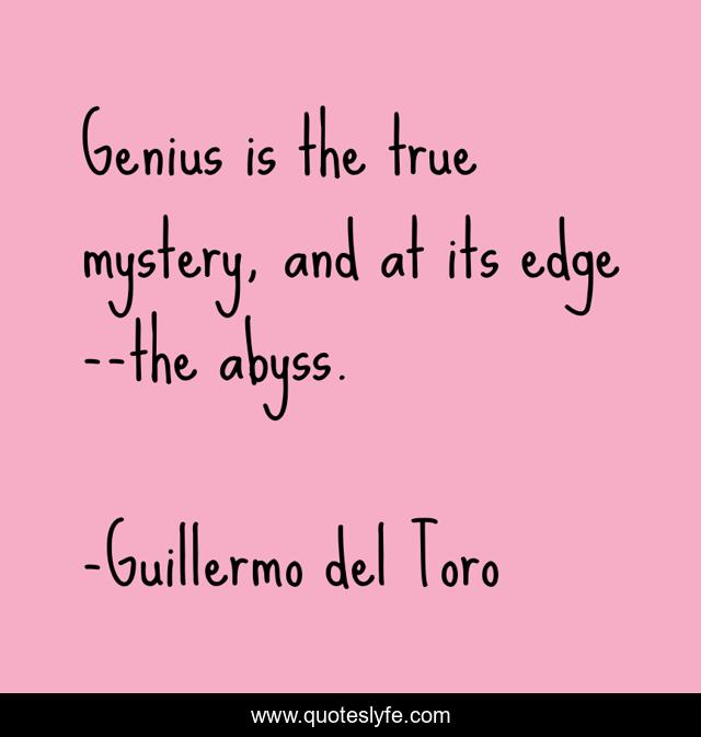 "Guillermo del Toro Quotes." Quoteslyfe.com, 2025. Mon. 08 Dec. 2025. <https://www.quoteslyfe.com/quote/Genius-is-the-true-mystery-and-at-230789>.