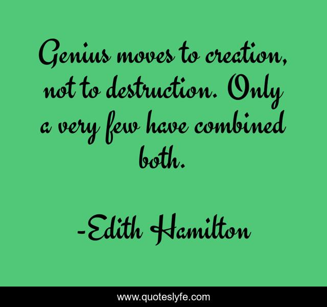 "Edith Hamilton Quotes." Quoteslyfe.com, 2025. Sat. 06 Dec. 2025. <https://www.quoteslyfe.com/quote/Genius-moves-to-creation-not-to-destruction-108354>.