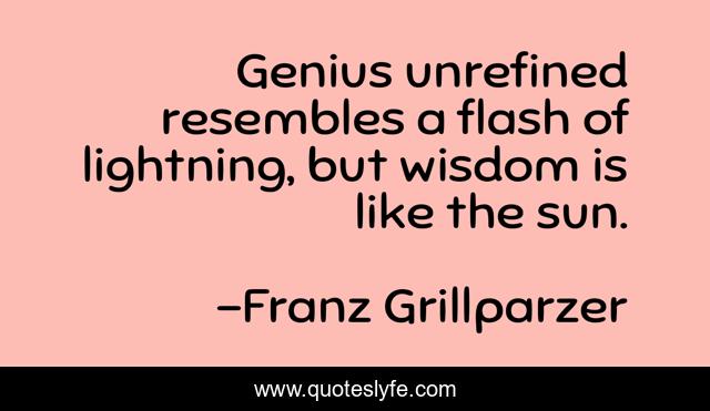 This page presents the quote "Genius unrefined resembles a flash of lightning, but wisdom is like the sun.". Author of this quote is Franz Grillparzer. This quote is about sun, genius, lightning,.