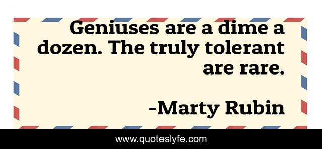 This page presents the quote "Geniuses are a dime a dozen. The truly tolerant are rare.". Author of this quote is Marty Rubin. This quote is about genius, tolerance,.