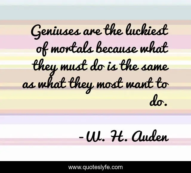 This page presents the quote "Geniuses are the luckiest of mortals because what they must do is the same as what they most want to do.". Author of this quote is W. H. Auden. .