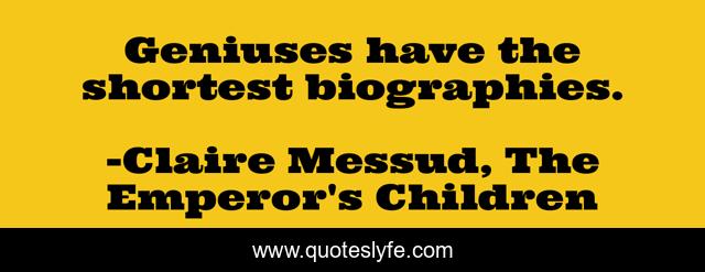 This page presents the quote "Geniuses have the shortest biographies.". Author of this quote is Claire Messud, The Emperor's Children. .