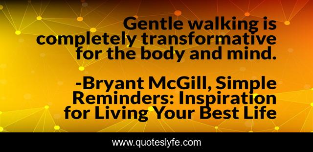 This page presents the quote "Gentle walking is completely transformative for the body and mind.". Author of this quote is Bryant McGill, Simple Reminders: Inspiration for Living Your Best Life. This quote is about body, gentleness, mind, spirituality, transformative,.