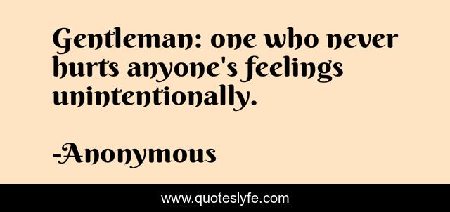 This page presents the quote "Gentleman: one who never hurts anyone's feelings unintentionally.". Author of this quote is Anonymous. This quote is about society, social,.