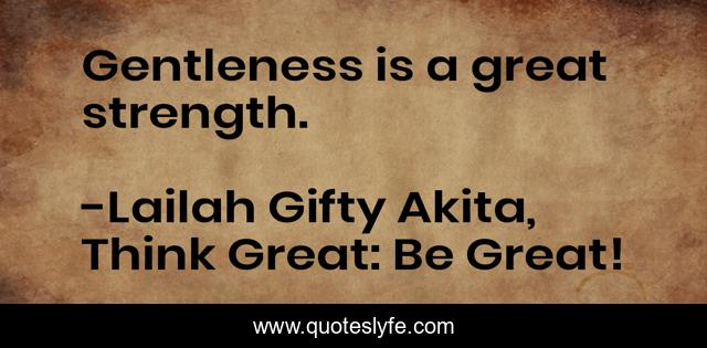 "Lailah Gifty Akita, Think Great: Be Great! Quotes." Quoteslyfe.com, 2025. Fri. 05 Dec. 2025. <https://www.quoteslyfe.com/quote/Gentleness-is-a-great-strength-73830>.