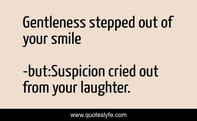 "but:Suspicion cried out from your laughter. Quotes." Quoteslyfe.com, 2025. Sat. 06 Dec. 2025. <https://www.quoteslyfe.com/quote/Gentleness-stepped-out-of-your-smile-194943>.