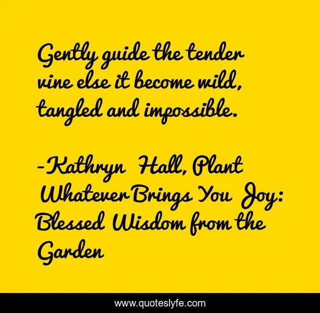 "Kathryn Hall, Plant Whatever Brings You Joy: Blessed Wisdom from the Garden Quotes." Quoteslyfe.com, 2025. Fri. 05 Dec. 2025. <https://www.quoteslyfe.com/quote/Gently-guide-the-tender-vine-else-it-13197>.