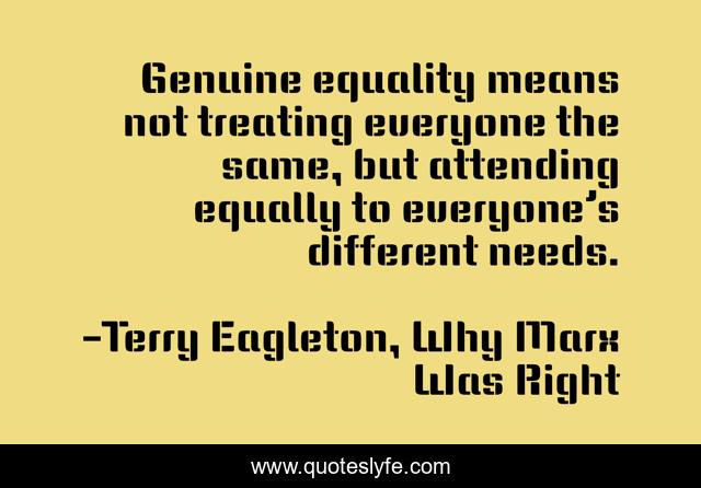 "Terry Eagleton, Why Marx Was Right Quotes." Quoteslyfe.com, 2025. Fri. 05 Dec. 2025. <https://www.quoteslyfe.com/quote/Genuine-equality-means-not-treating-everyone-the-208425>.