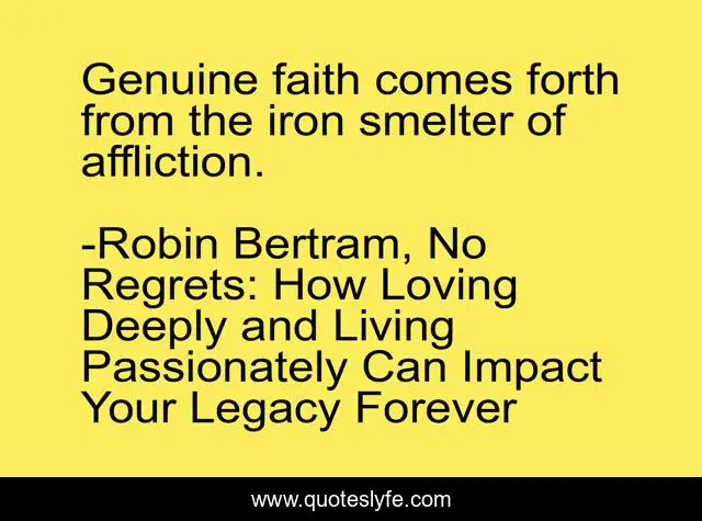 "Robin Bertram, No Regrets: How Loving Deeply and Living Passionately Can Impact Your Legacy Forever Quotes." Quoteslyfe.com, 2025. Sat. 06 Dec. 2025. <https://www.quoteslyfe.com/quote/Genuine-faith-comes-forth-from-the-iron-26363>.