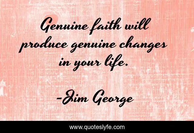 This page presents the quote "Genuine faith will produce genuine changes in your life.". Author of this quote is Jim George. This quote is about real, faith, life, genuine, god, blessed, change,.