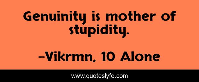 "Vikrmn, 10 Alone Quotes." Quoteslyfe.com, 2025. Sun. 07 Dec. 2025. <https://www.quoteslyfe.com/quote/Genuinity-is-mother-of-stupidity-233796>.