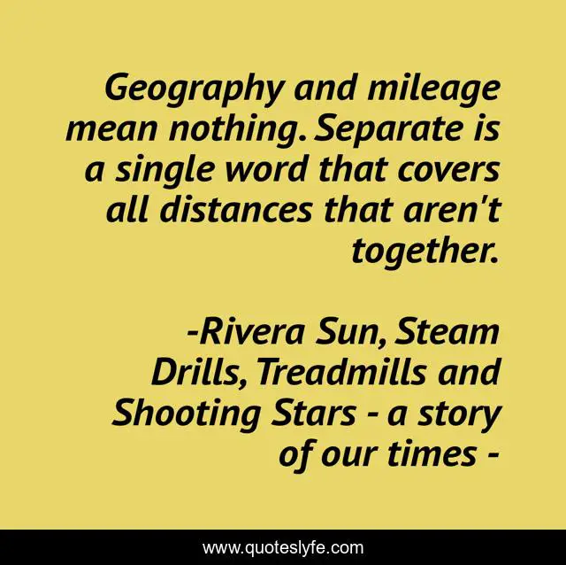 "Rivera Sun, Steam Drills, Treadmills and Shooting Stars - a story of our times - Quotes." Quoteslyfe.com, 2025. Fri. 05 Dec. 2025. <https://www.quoteslyfe.com/quote/Geography-and-mileage-mean-nothing-Separate-is-281393>.