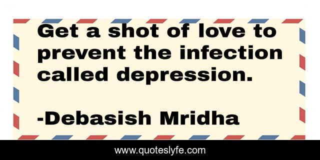 This page presents the quote "Get a shot of love to prevent the infection called depression.". Author of this quote is Debasish Mridha. This quote is about love, love-and-depression, philosophy, debasish-mridha, quotes, depression, inspirational, enthusiasm, debasish-mridha-m-d,.