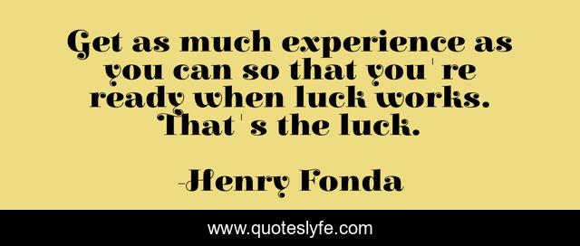 This page presents the quote "Get as much experience as you can so that you're ready when luck works. That's the luck.". Author of this quote is Henry Fonda. This quote is about courage, boldness,.