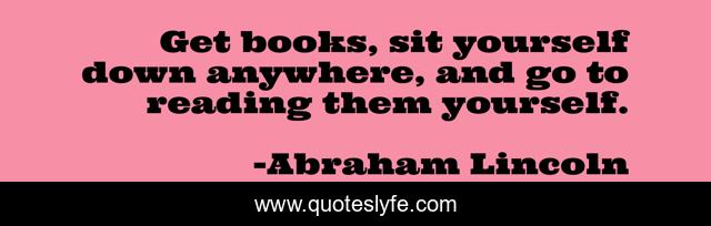 This page presents the quote "Get books, sit yourself down anywhere, and go to reading them yourself.". Author of this quote is Abraham Lincoln. This quote is about books, reading,.