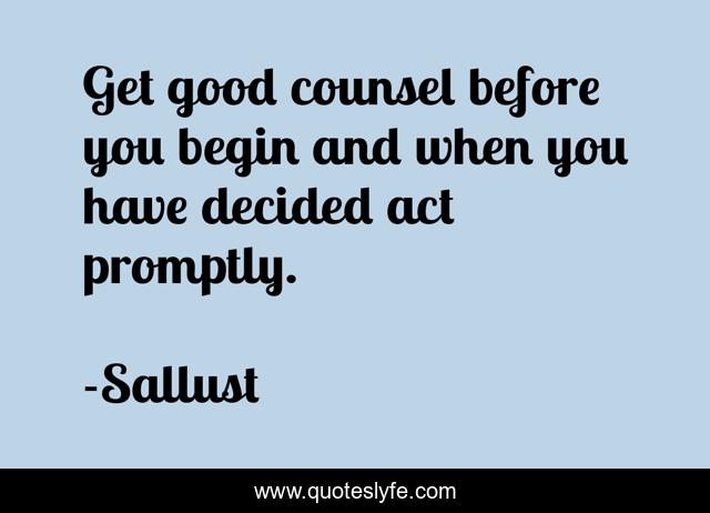 This page presents the quote "Get good counsel before you begin and when you have decided act promptly.". Author of this quote is Sallust. This quote is about going, getting,.