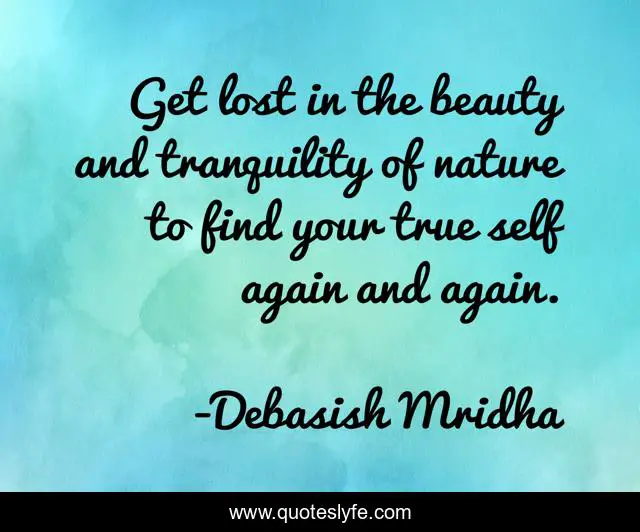This page presents the quote "Get lost in the beauty and tranquility of nature to find your true self again and again.". Author of this quote is Debasish Mridha. This quote is about beauty-and-tranquility, find-your-true-self, mridha, debasish, debasish-mridha, inspirational, enthusiasm, philosophy,.