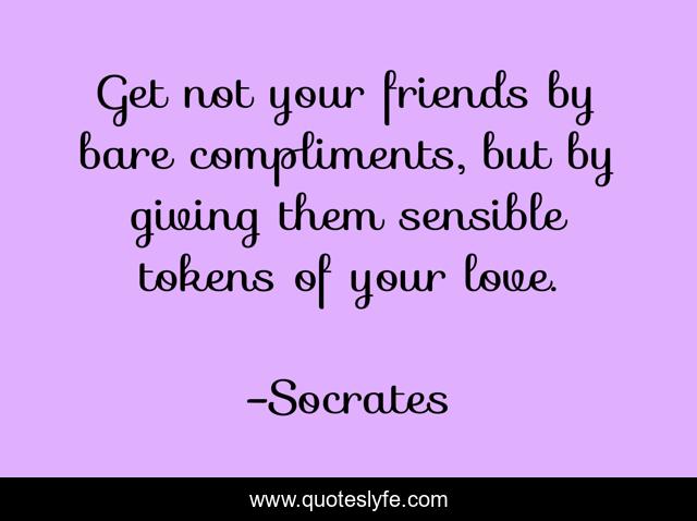 This page presents the quote "Get not your friends by bare compliments, but by giving them sensible tokens of your love.". Author of this quote is Socrates. This quote is about tokens, compliments, love, friendship, affection,.
