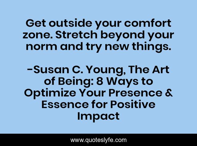 "Susan C. Young, The Art of Being: 8 Ways to Optimize Your Presence & Essence for Positive Impact Quotes." Quoteslyfe.com, 2025. Sat. 06 Dec. 2025. <https://www.quoteslyfe.com/quote/Get-outside-your-comfort-zone-Stretch-beyond-199359>.