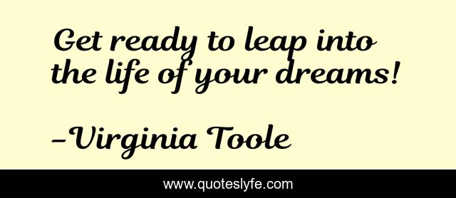 This page presents the quote "Get ready to leap into the life of your dreams!". Author of this quote is Virginia Toole. This quote is about enthusiasm, leap, dreams, life, inspirational,.