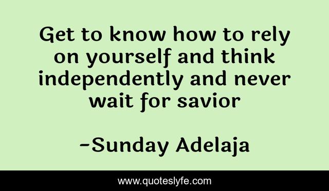 This page presents the quote "Get to know how to rely on yourself and think independently and never wait for savior". Author of this quote is Sunday Adelaja. This quote is about independently, goal, get, life, calling, purpose, savior, rely, mission,.